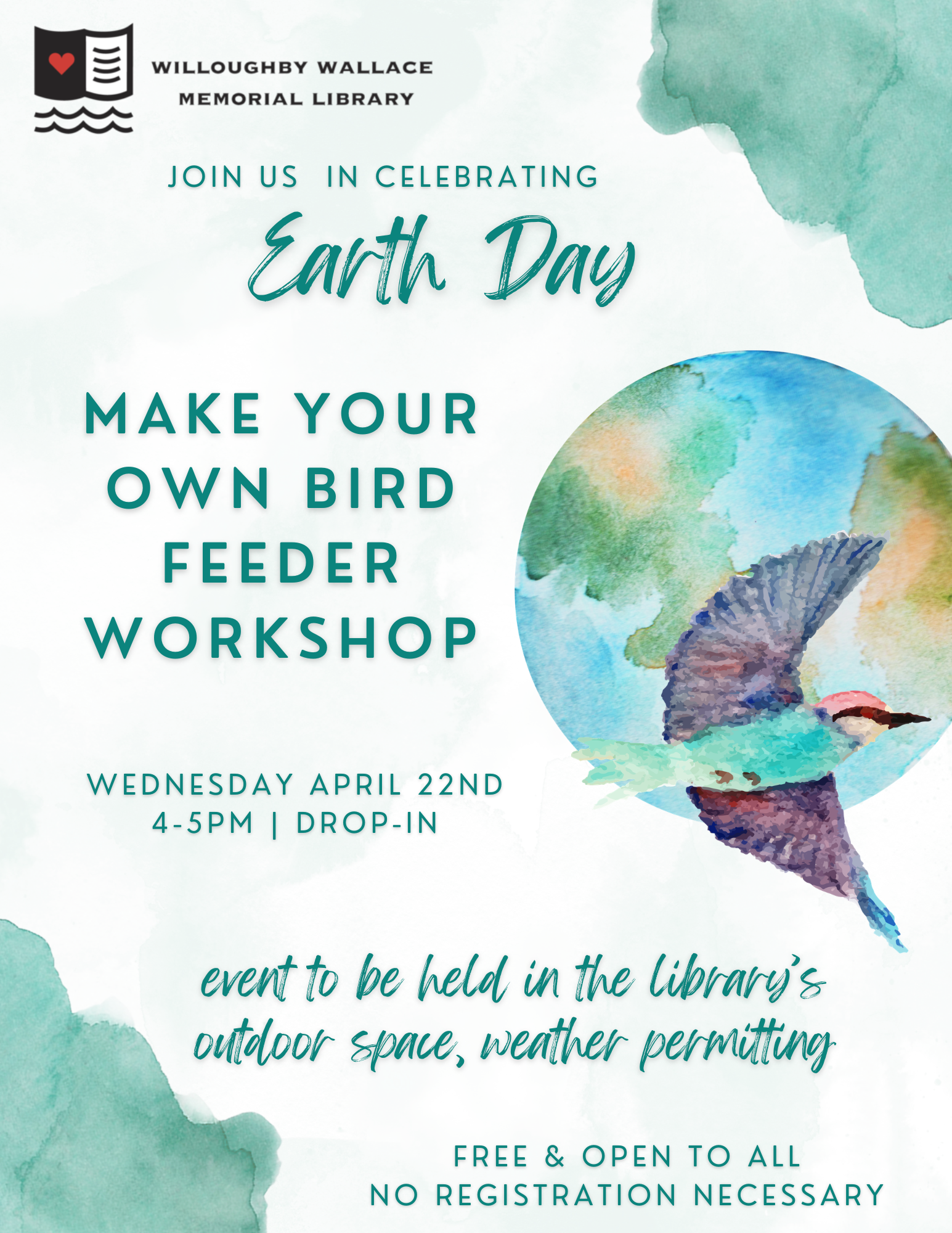 Make Your Own Bird Feeder Wednesday, April 22, 2026 4:00 PM 5:00 PM 16:00 17:00 WWM Library 146 Thimble Island Road Branford, CT, 06405 United States (map) Google Calendar ICS Join us in celebrating Earth day with a drop-in, make your own bird feeder workshop. Open to all ages and no registration required.