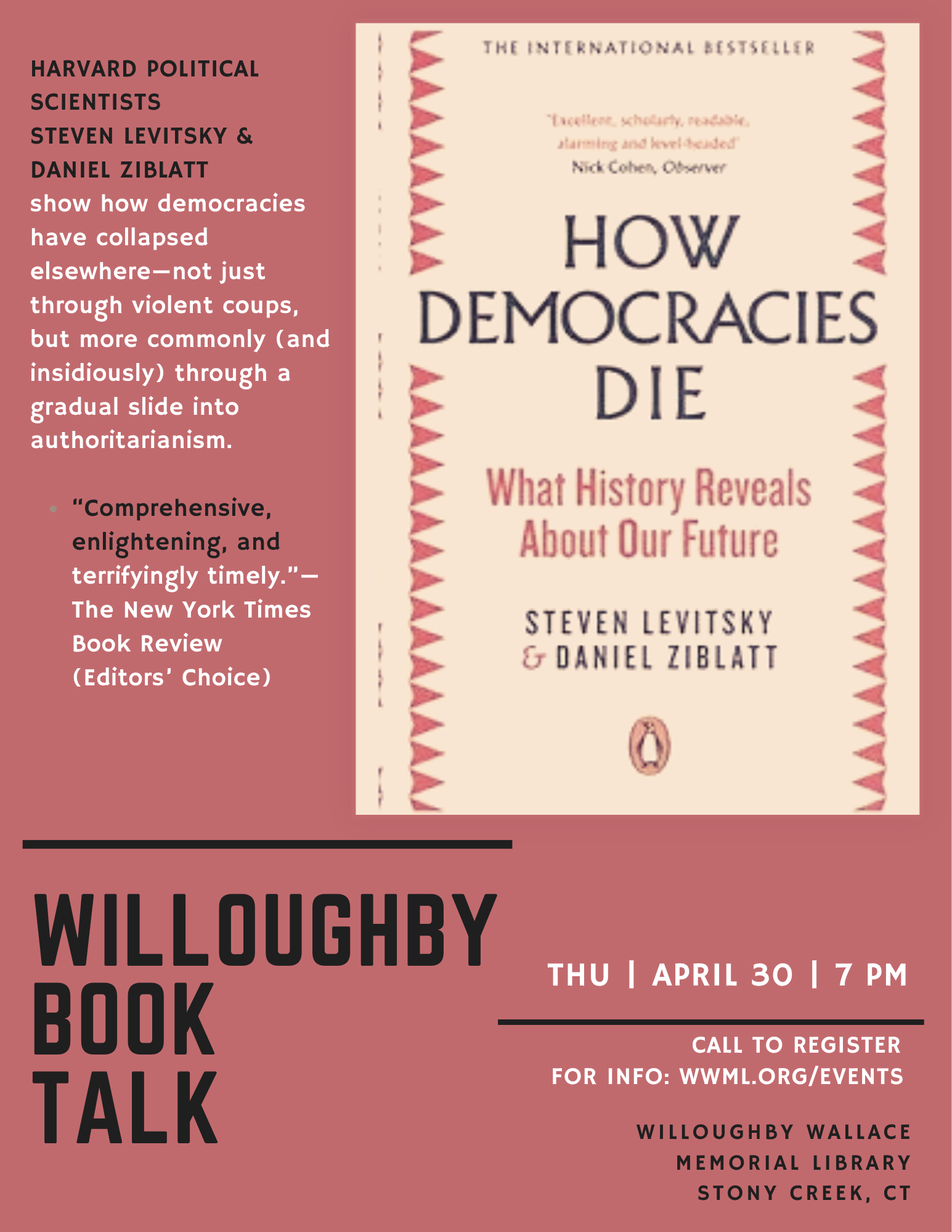 “The most important book of the Trump era was not Bob Woodward’s Fear or Michael Wolff’s Fire and Fury or any of the other bestselling exposes of the White House circus. Arguably it was a wonkish tome by two Harvard political scientists, Steven Levitsky and Daniel Ziblatt, published a year into Donald Trump’s presidency and entitled How Democracies Die.”—The Economist